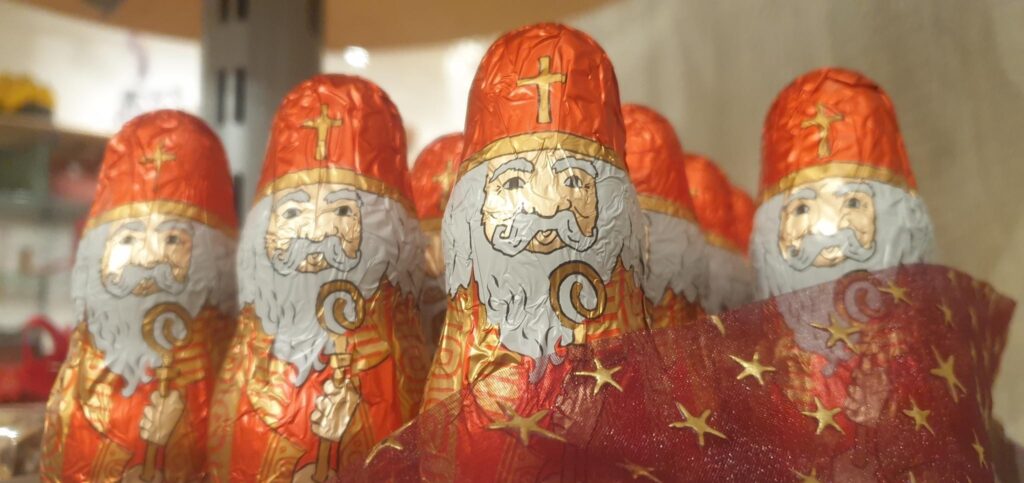 Bei diesen Nikoläusen handelt es sich um die „echten“ Bischöfe mit Mitra und Bischofsstab, gegensätzlich zu vielen weitverbreiteten Weihnachtsmann-Figuren.