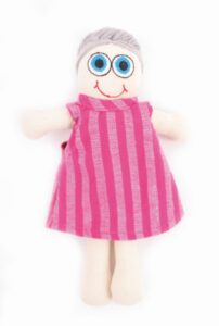 Produziert werden diese Puppen von der Organisation Selyn in Sri Lanka. Selyn beschäftigt ca. 250 Angestellte und betreibt 2 eigene Webereien und eine Färberei.